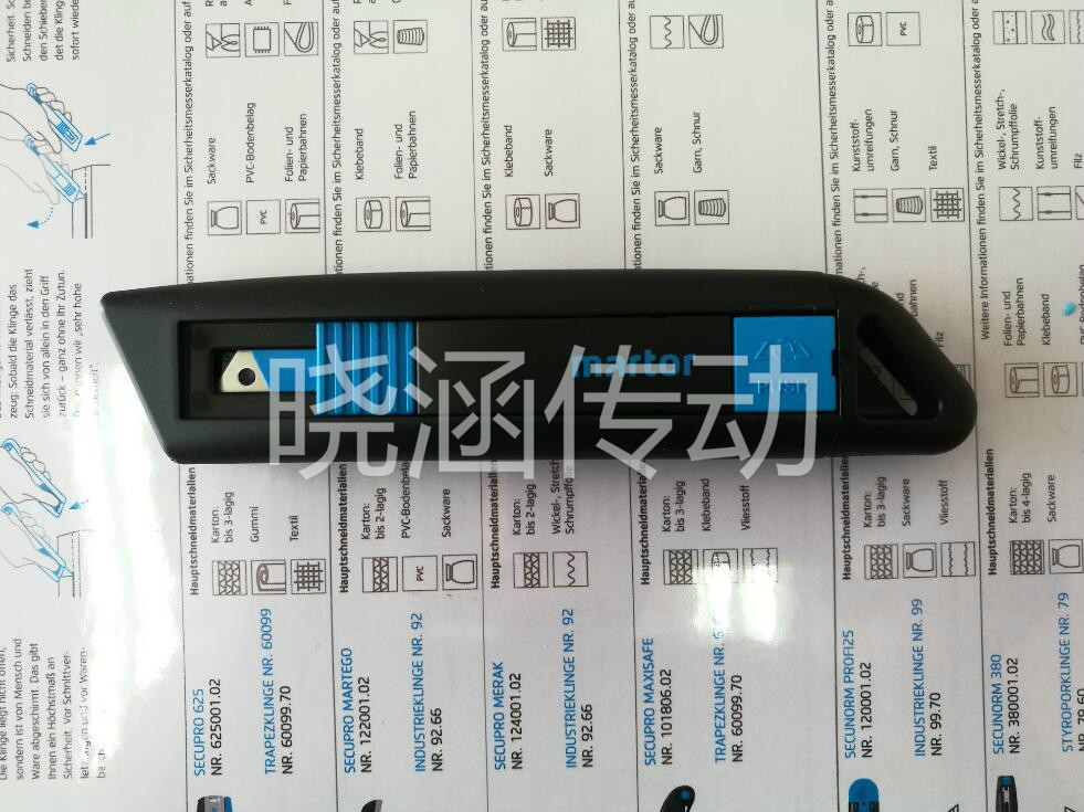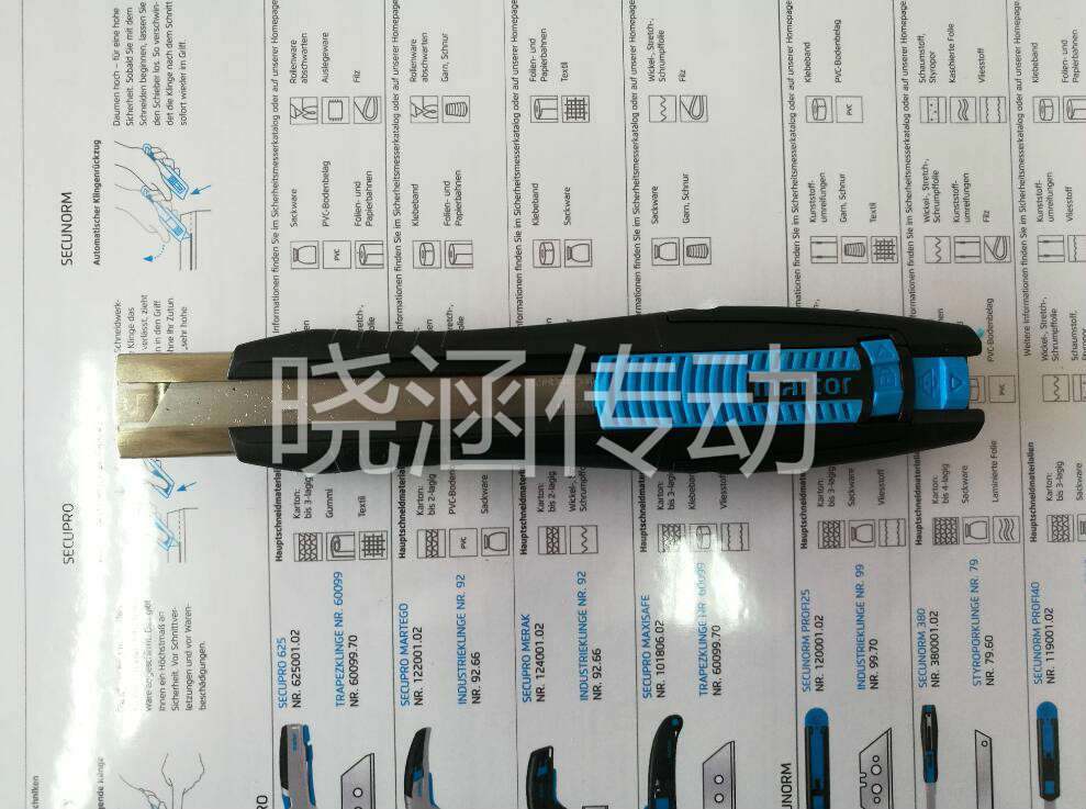 上海福名智實業(yè)有限公司,專業(yè)銷售德國原裝進(jìn)口LUTZ刀片及MARTOR安全刀具,LUTZ GmbH &Co.KG和MARTOR KG是近百年的德國專業(yè)研發(fā)生產(chǎn)刀具企業(yè). 廣泛應(yīng)用于印刷、塑料、皮革、林業(yè)、橡膠、塑料、食品、鋁箔、煙草、卷煙、包裝材料、薄膜、電線、化纖、玻纖、紡織、木工、制袋機(jī)、造紙、鋁箔、冶金等方面,并在國際上享有一定的知名度,具有品種規(guī)格齊全、切削效果明顯、安全防護(hù)性高、更換頻率低、使用壽命延長等優(yōu)越的特點(diǎn)!